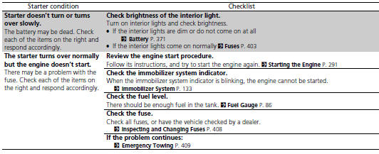 Checking the Engine If the engine does not start, turn the ignition switch to START