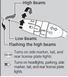 Rotating the light switch turns the lights on and off, regardless of the position of the ignition switch.